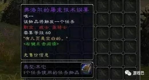 第一本当然就是屠龙纲要啦!玩家在厄运可以去开书堆或者完美贡品来获得这本书,而这是可以交易的,战士通过这本书可以获得一把防御天赋的标志性武器-奎尔塞拉,目前这本书价值1500g左右,开出一本千金马可就不愁啦。