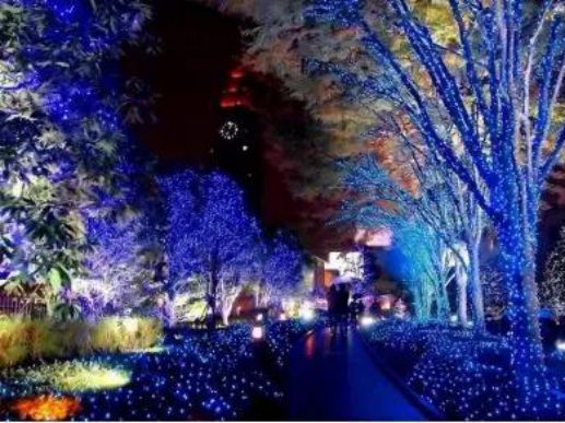 穿过霓虹灯墙仿佛将进入童话世界,黑夜与灯光的搭配五光十色