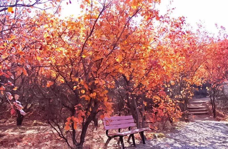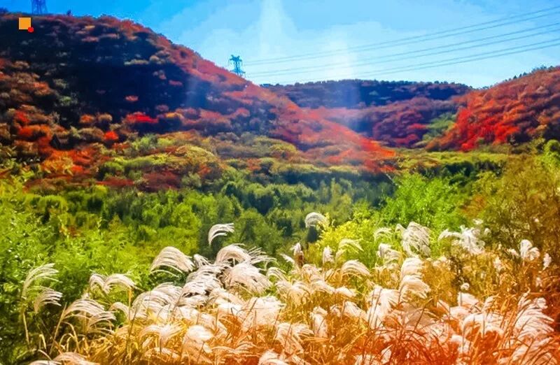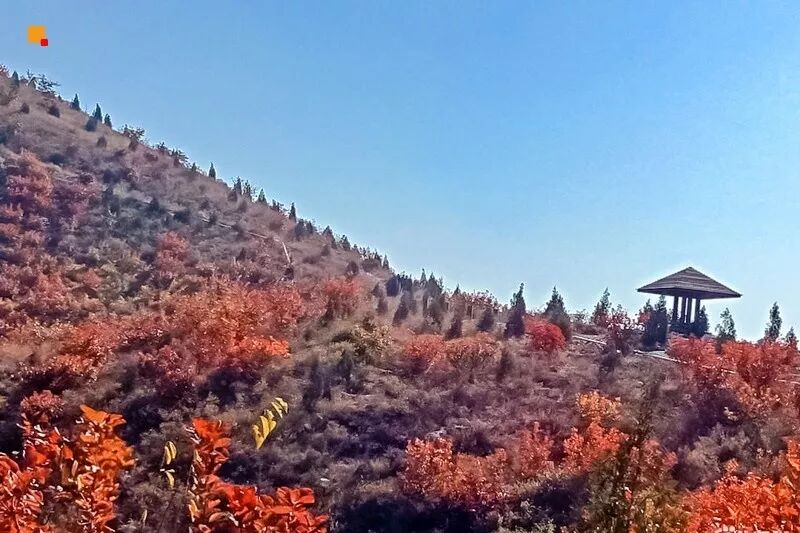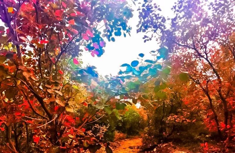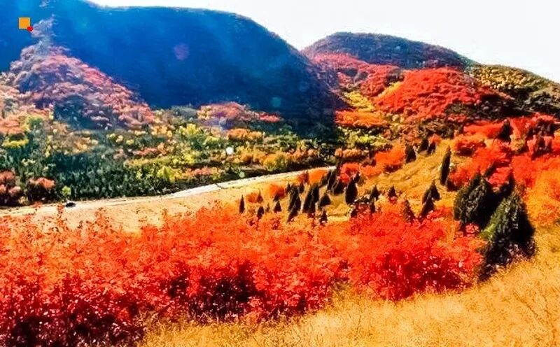 山间数万亩各具特色的彩叶林,包括火炬、黄栌、元宝枫、银杏、白蜡等树木50余种,勾勒出赤、橙、黄、绿等交织的五彩风景带。红彤彤的叶片,阳光给叶缘镶上金边,夹杂在青松翠柏之中,分外迷穿过丛林,我们能看到路边晾晒着一片玉米,秋,就是丰收的意义吧!