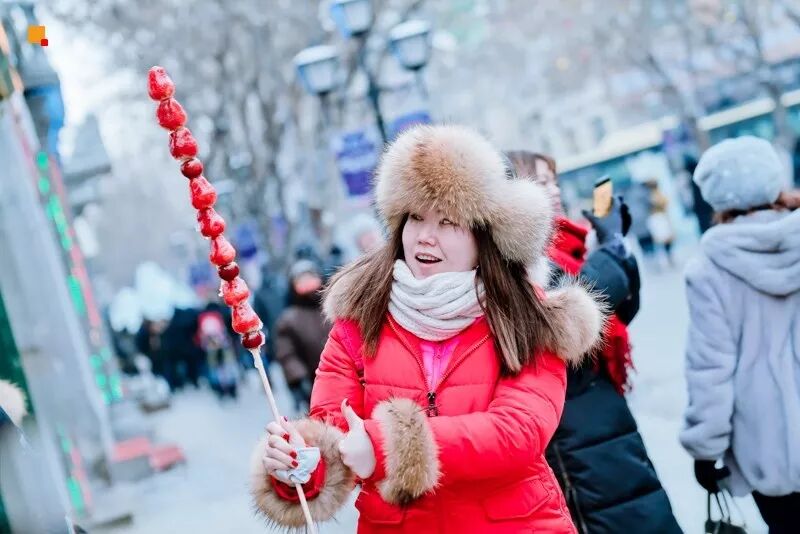 雪韵大街上都是卖马迭尔冰棍,冻水果等等土特产和纪念品的小摊小贩。户外自带冰箱属性,冰棍都不用放冰箱,走在街上越吃越结实。