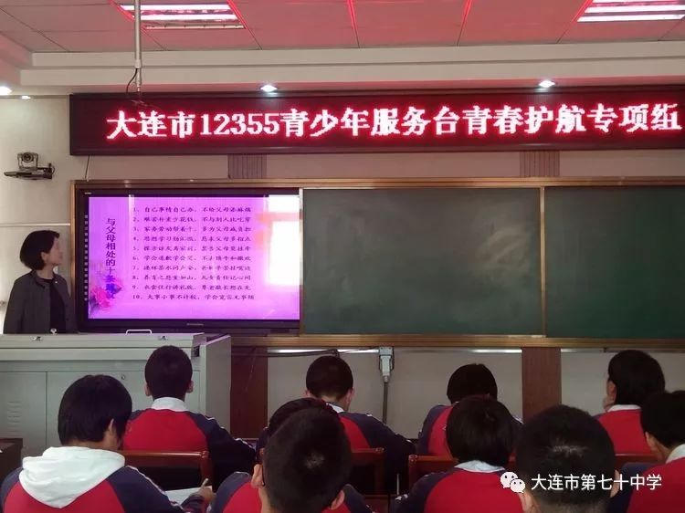 为进一步加强学生与家长之间的沟通,增进感情,使亲子关系更加密切,帮助建立平等和谐的家庭氛围,近日,我校有幸邀请到了大连市12355青少年服务台青春护航专项组的心理学讲师俞敏敏老师,针对“如何与父母相处”这一话题展开互动。