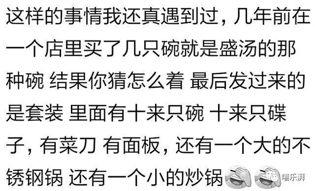 二、唯一一次,淘宝19.9买5个威士忌的杯子,店家给我寄来15个。我联系店家说,地址给我,我把剩下的10个杯子寄回去,到付。卖家来了一句,快递费那么贵,送你了。后来有一天寄快递的时候顺口问了小哥,寄10个杯子到哪哪哪多少钱,小哥来句,12块。这杯子成本是有多便宜。