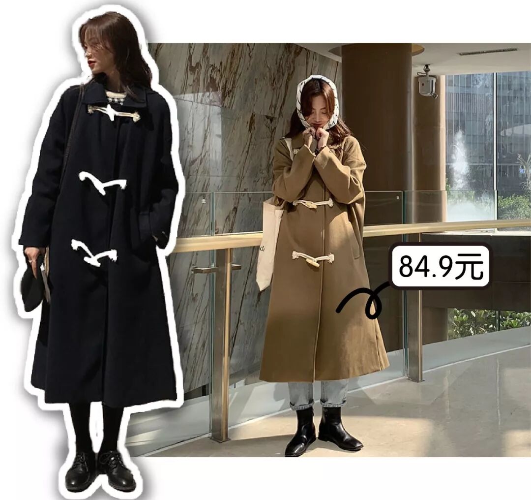 大衣的价格也是非常美丽不过百就有这么大一件外套牛角扣这款有两个颜色学生党上班族都可以pick