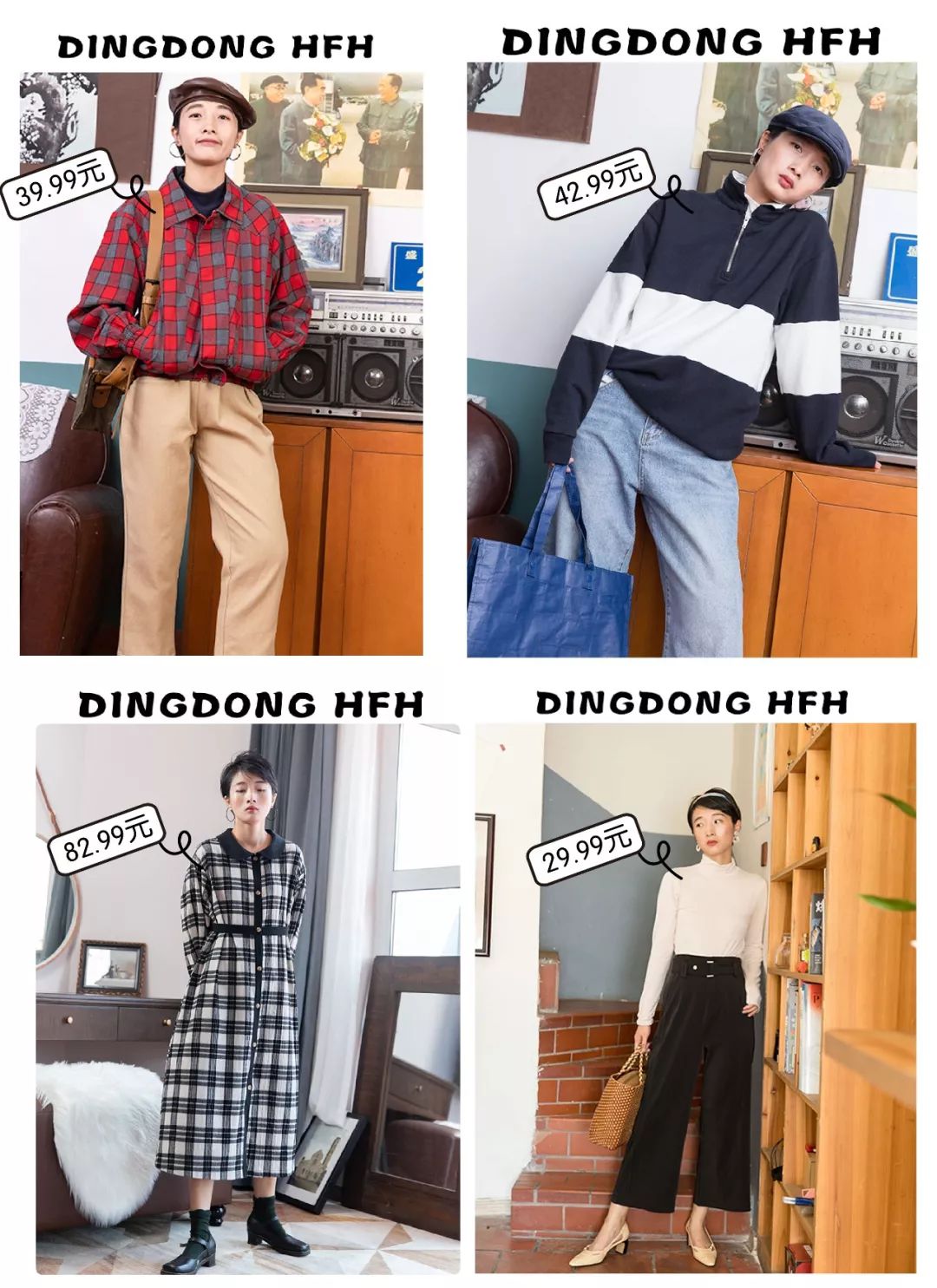 (为了字体统一所以小标写的简体的dong)丁東家主销的是尾货和库存产品所以价格是非常美丽的而且店主的品味实在太好衣服和场景搭配的好好看每次都种草一大堆忍不住把她的搭配都买下来所以逛着逛着购物车就满了