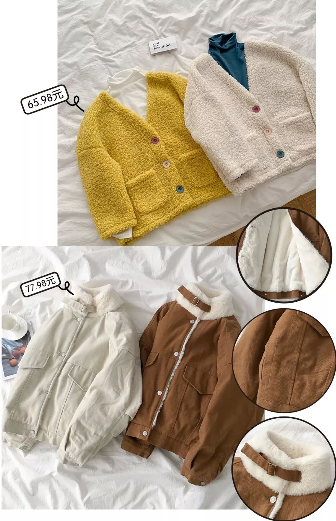 却没逃过今年的羊羔绒小夹克(可能是因为我爱豆穿了被种草了)羊羔绒从里到外都是暖融融的就很适合冬天了,上身敲可爱~像长沙现在十几度就已经可以穿了