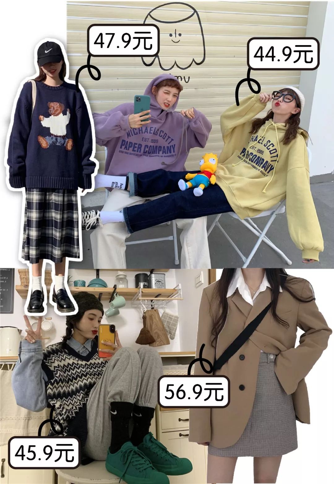 像学生党早上没时间打扮什么的直接整套入手解决问题卫衣、毛衣和小西装都是必入的了穿起来方便,通勤也无压力