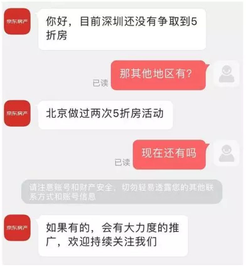 对于5折购房,后台表示,深圳还没有争取到5折房,但北京做过两次5折房活动。