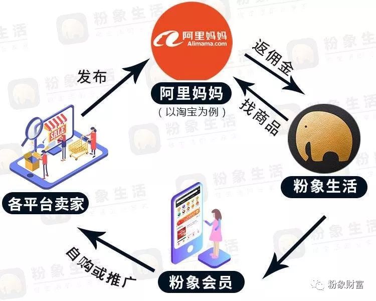 粉象生活的会员帮淘宝店主推广产品,通过推广的产品成功达成交易的话,会员就可以获得淘宝店主预先设置好的佣金,淘宝扣除10%的技术服务费后返给粉象生活,粉象生活再返还给我们的会员!自己使用粉象等于折上折,推广别人下载还能赚钱!