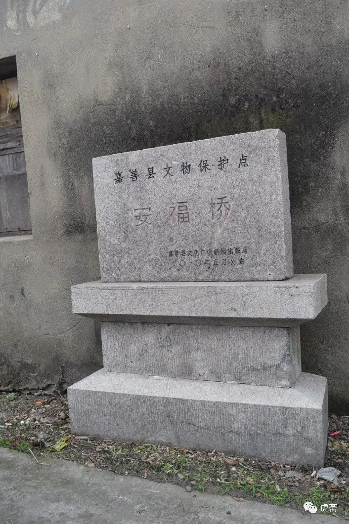 安福桥北堍路口有文保碑,其中内容显示安福桥为2010年5月公布的嘉善县文物保护点。
