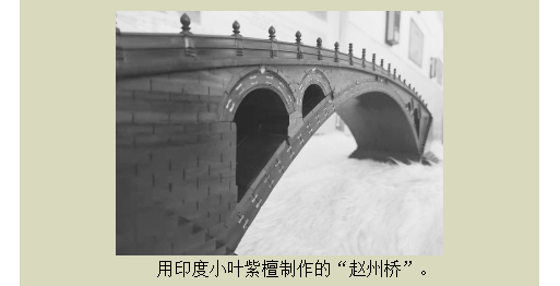 为了再制作出更高档、更精致的微缩版赵州桥,张金现四处选购木材。后来,他从一家高档家具厂花费两万余元,论斤买回来印度小叶紫檀木料以及下脚料。