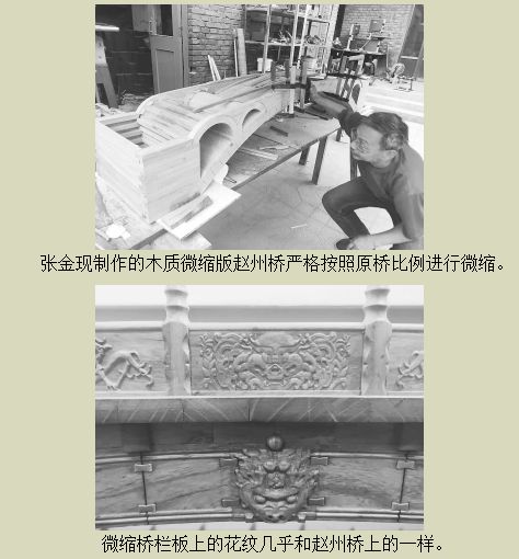 仔细看张金现做的微缩版赵州桥,同样有这样的“收分”。“所以,赵州桥上的每个零部件没有一块尺寸和形状是相同的,这就加大了制作微缩版赵州桥的难度。”