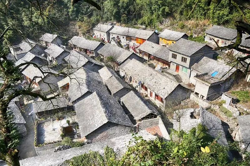 高荡是布依族石头建筑文化的缩影,贵州的“八大怪”之一就是布依族的“石头当瓦盖”, 建筑形式多以“以木为架,石头为墙,石片为瓦”,特点是冬暖夏凉,隔热驱湿,不怕火灾。石堡垒、石阶、石巷、石门,石墙石壁、石板房,这石头的世界宛如无字的史诗记述着高荡古朴、厚重、坚实悠远的历史。
