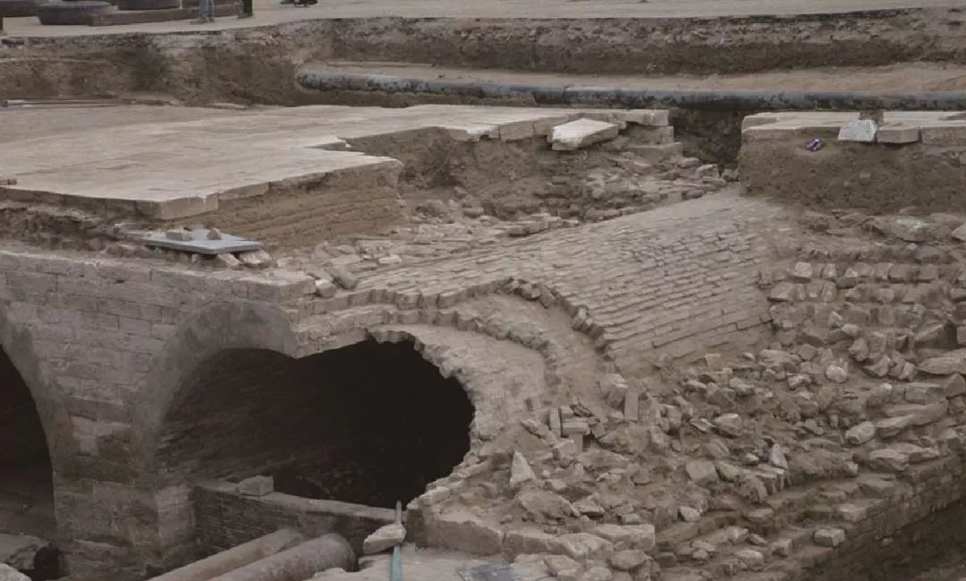经过发掘,共清理古桥1座,同时期路面1处,灰沟1条,其中发现的古桥遗迹最为重要。该桥属双孔砖石混合拱桥,南北朝向。桥面、护栏及其下部地伏石、檐石,拱腹填斜,砖构拱券,桥台、桥底内石装板,分水尖,凤凰台,燕翅等部分结构完整。桥长近20米,宽9米,高近4米。桥面长11.5米,宽8.6米。