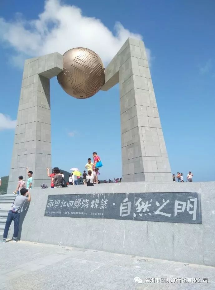 海湾上围绕站纵深百米的防风林带,四季郁郁葱葱,与金黄色的沙湾和湛蓝的海水构成优美的景观。后游览【北回归线标志塔——自然之门】