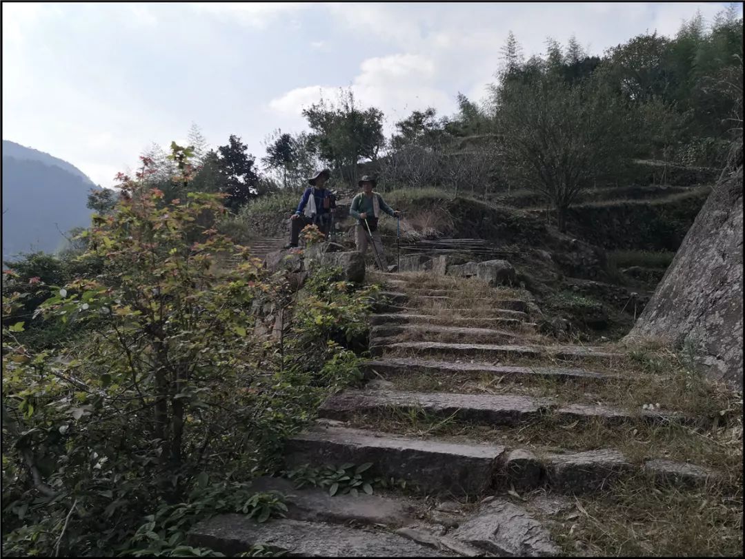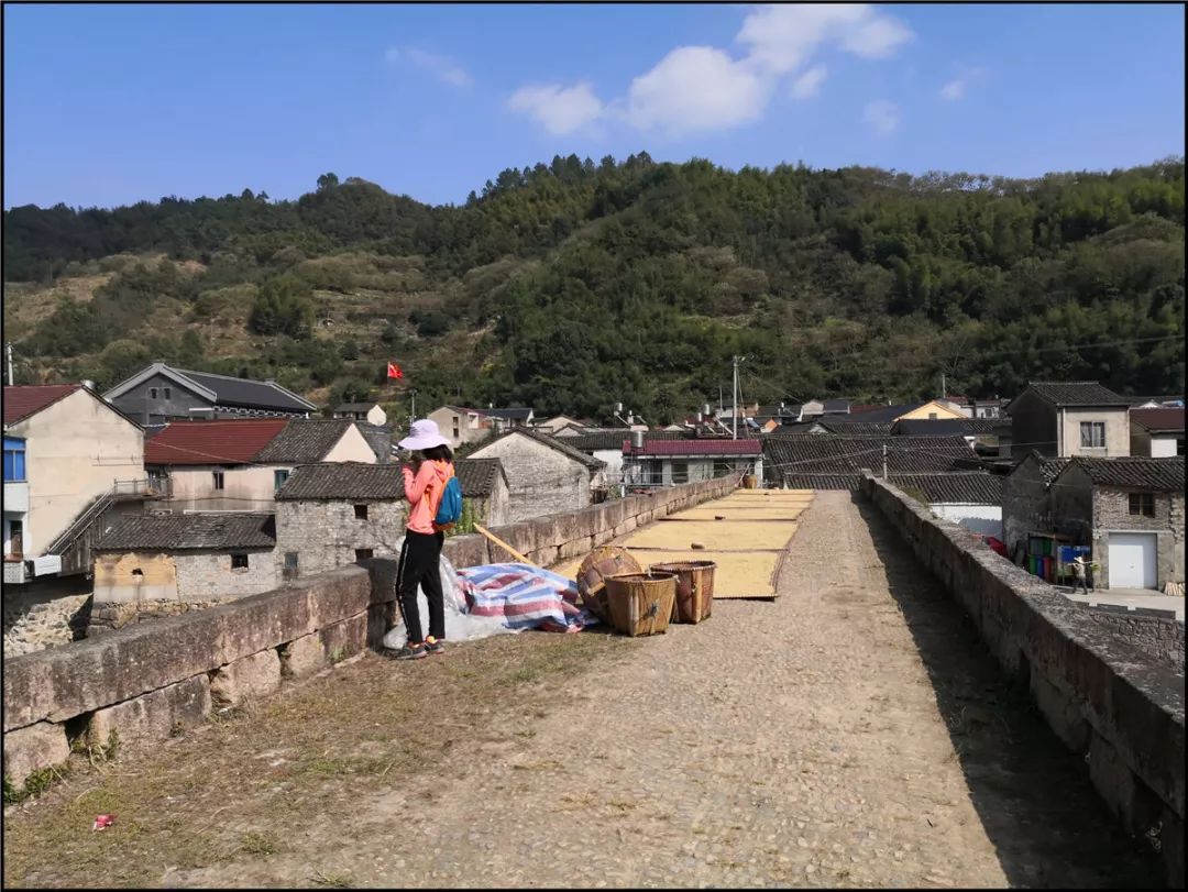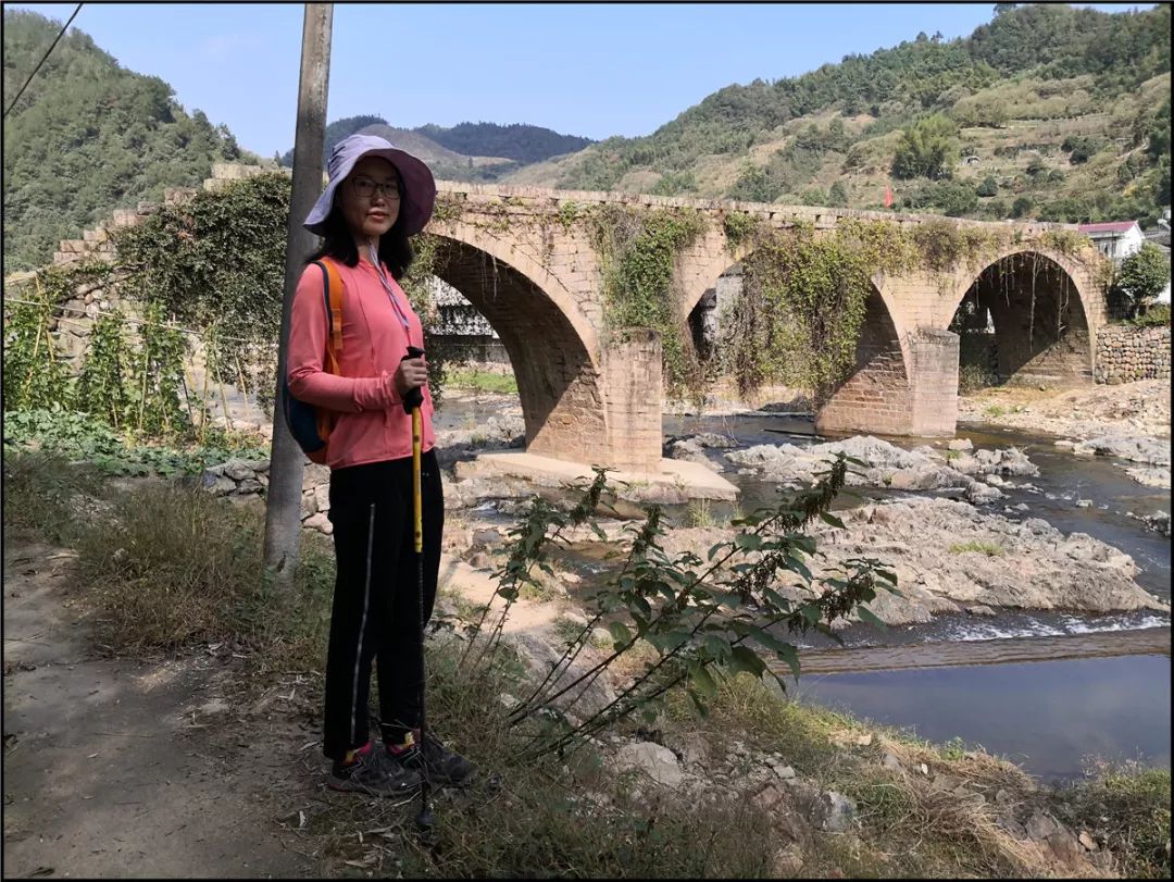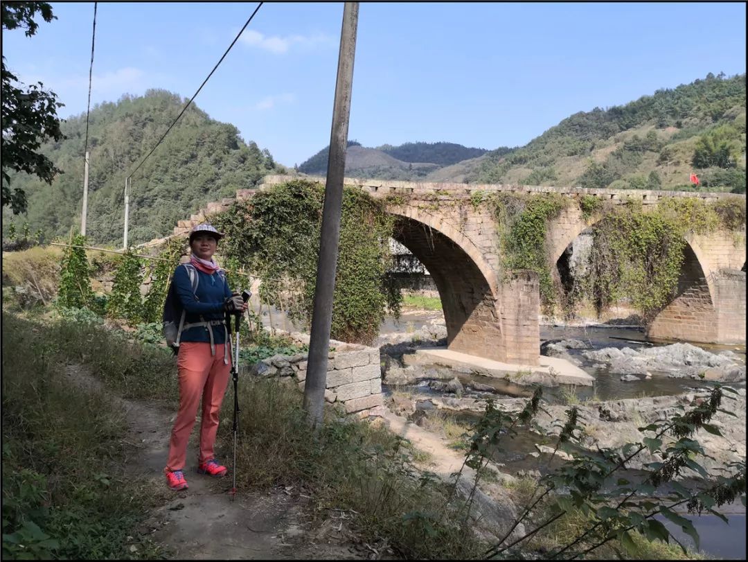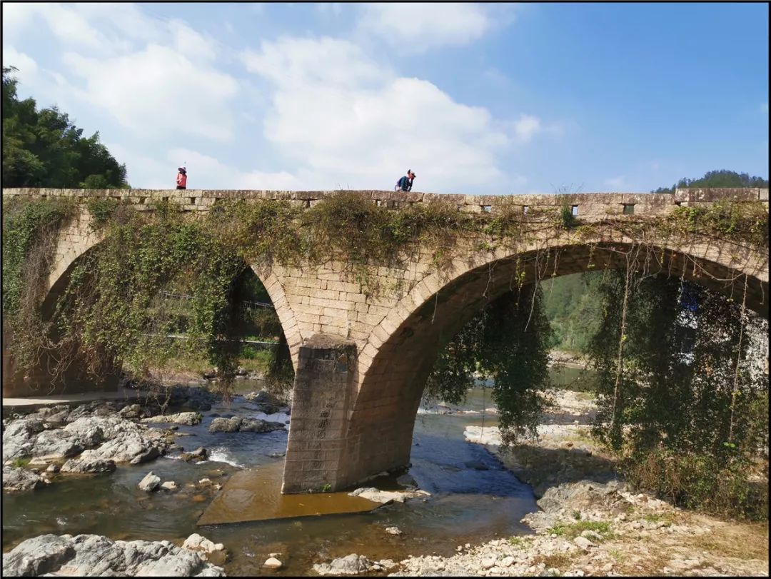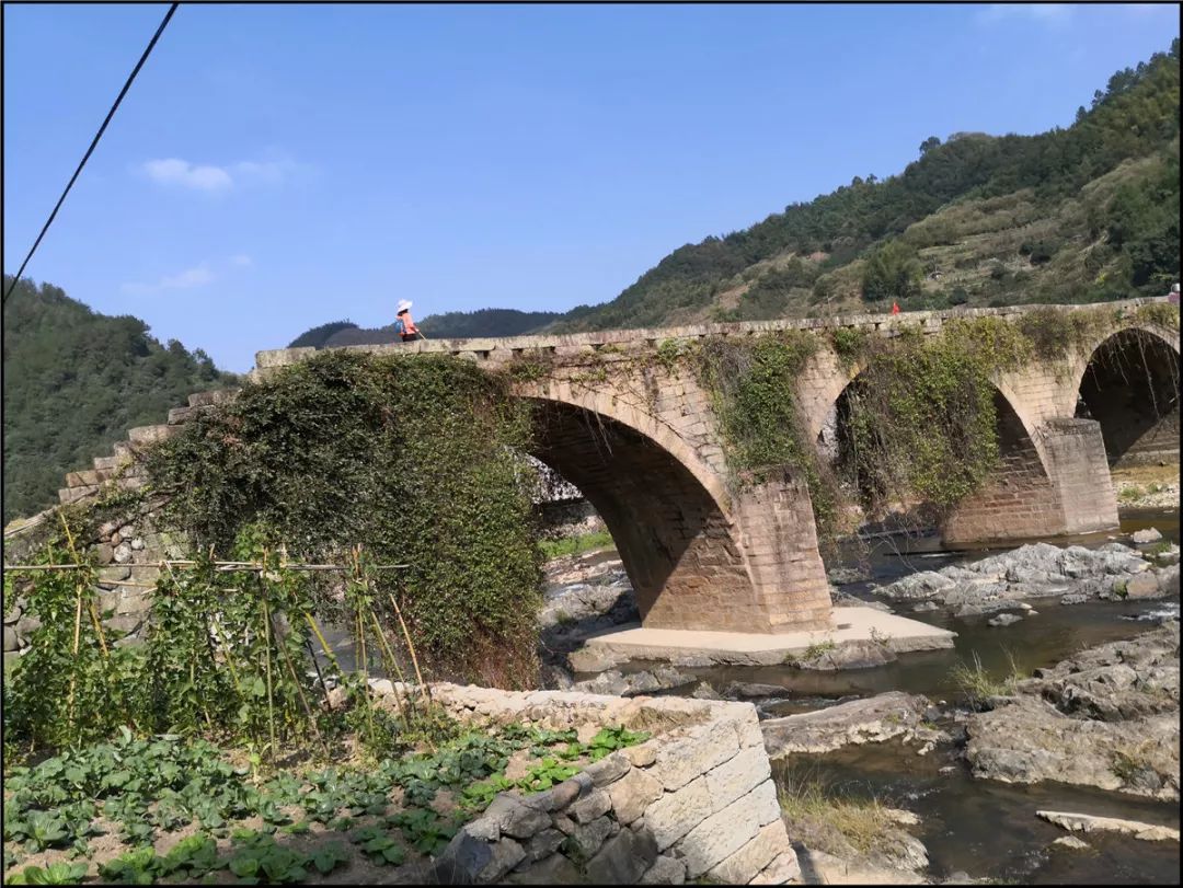 我们开始从马路上下来,去看一座古桥,我们三个还过溪走了呢。
