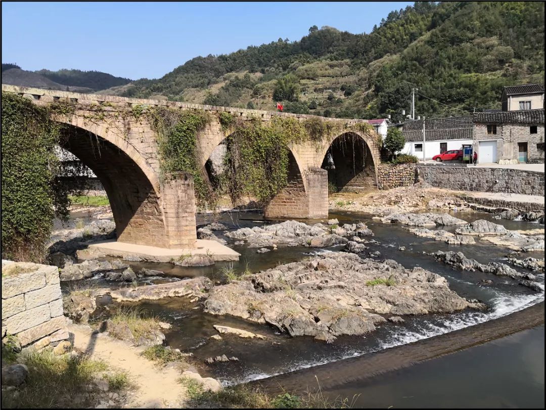确实在前方,出现了一座三孔大石桥,是古桥吗?我实在有点怀疑它的古老!