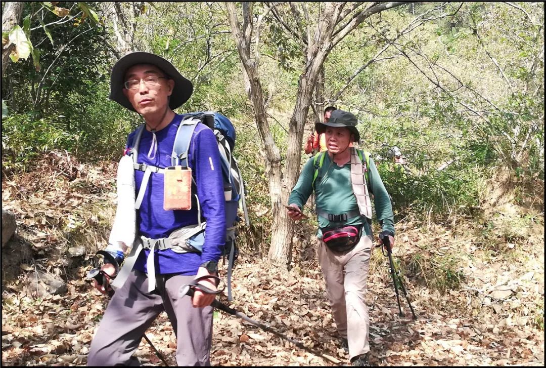 前者:阿西同学,上则驴记中,曾经写过他;后者是海盗船兄长,是整个徒步队员中,从年轮上来说,排名老二,今年也到了69岁了,实在看不出来吧,我们爬山的人就是看上去年轻啊。你想年轻吗,快来加入爬山队伍吧。
