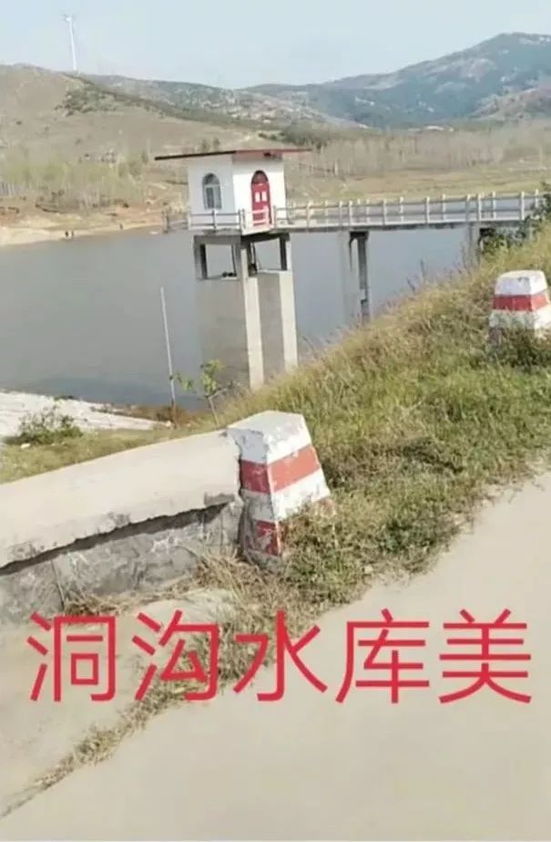 洞沟村后有座水库,东西走向有八百米长,南北宽也有四百多米。水库大坝经五八年,六六年和上世纪的八十年代三次整修加固已经有十层楼那么高的庞然大物水坝,坝高大雄伟,南北横卧,水清澈见底,波光粼粼,四面环山,秀丽美景让人心旷神怡,留连忘返!
