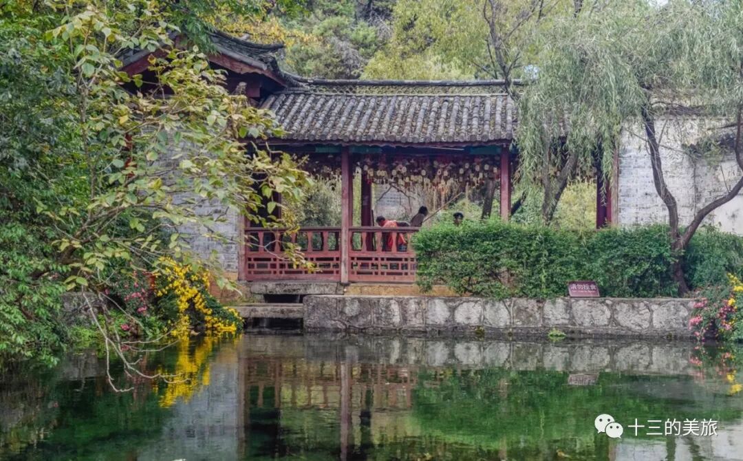 游览束河古镇,需得顺水而下,九鼎龙潭又称为“龙泉”,潭周绿柳垂地,翠柏指天,泉水清澈,游鱼可数。沿着清澈的流水蜿蜒于街巷之中,就可以走到有200多年历史的“青龙桥”,经过时间的打磨,这里的石板光滑可鉴,需得仔细行走。