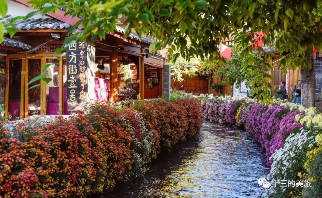 再往下游是“飞花触水”,这里聚集了许多酒吧街,花团锦簇,游客如织。最后再往“四方听音”广场而去吧,这里是古镇最热闹的地方,围坐在一起打着手鼓,感受清静中的那一些些热度。