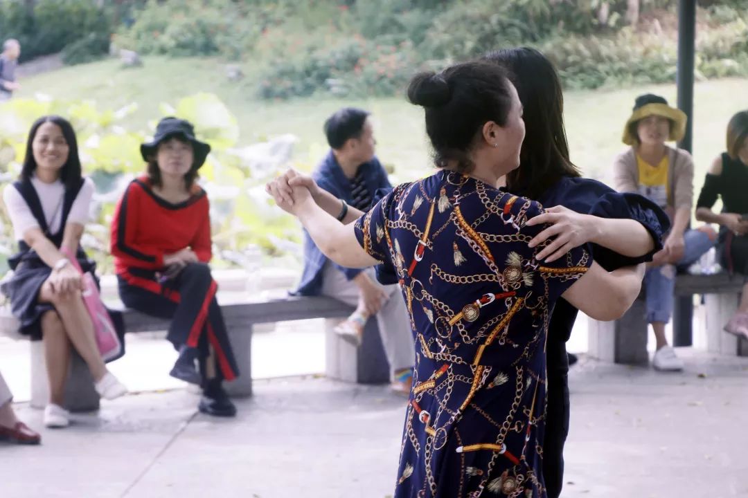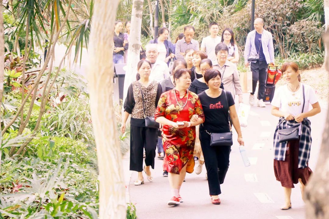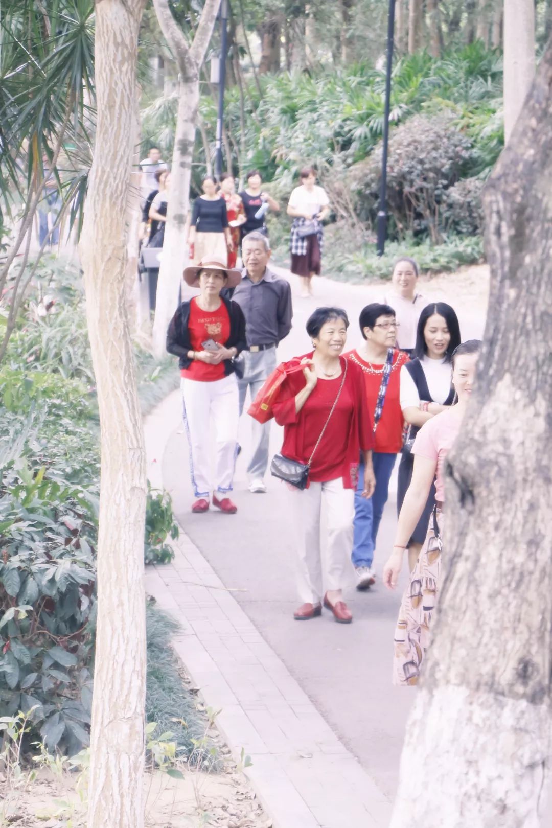 一行人走走停停赏着沿途的秋色,闻着桂香,行道上的自行车铃交织着秋风,好不惬意。