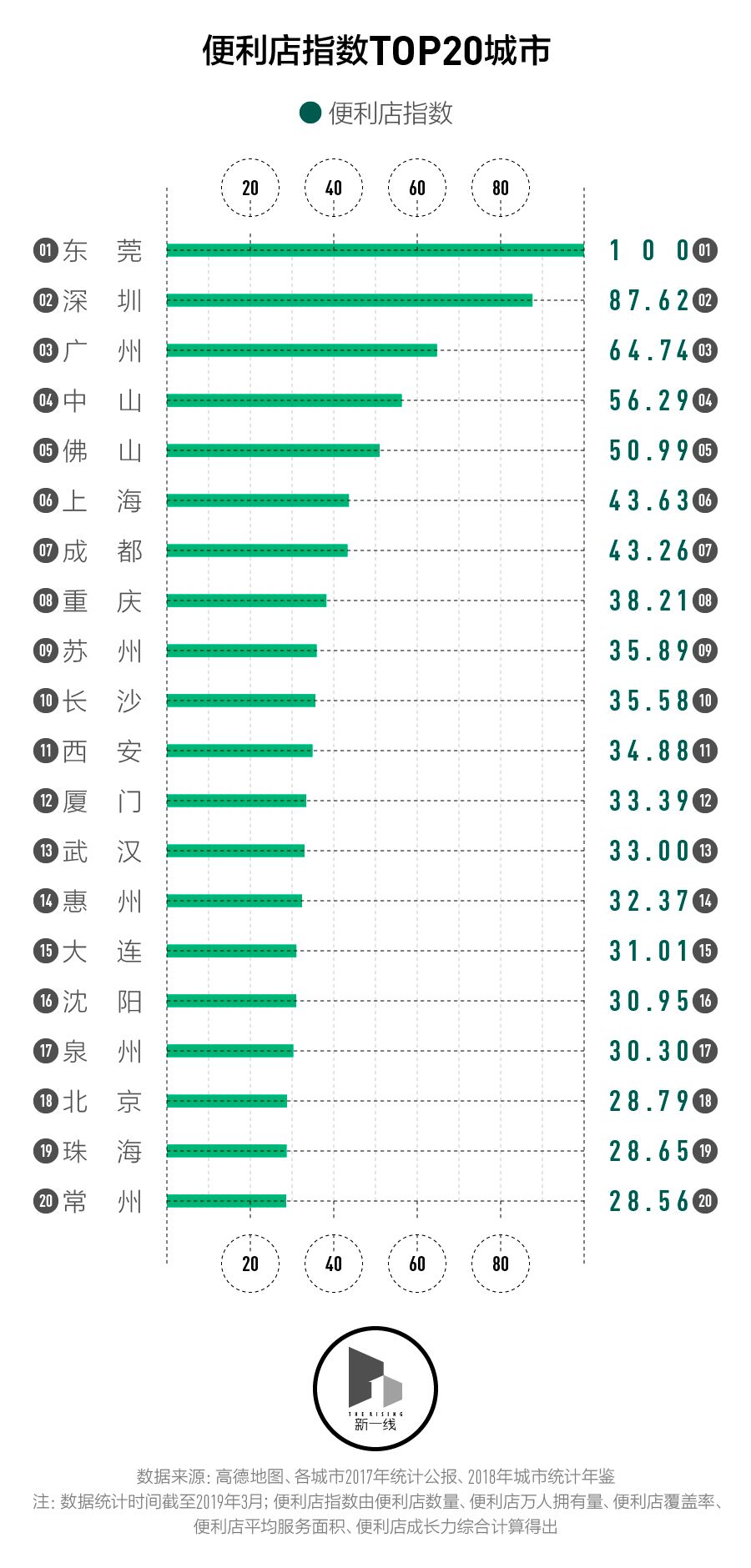 从城市的地缘属性看,仅西安、大连、沈阳和北京4座北方城市进前20,北京排在第18位。便利店的到店消费属性让北方城市的便利店几乎少做一个冬季的生意,这可能是北方城市便利店整体发展较缓慢的其中一个原因。