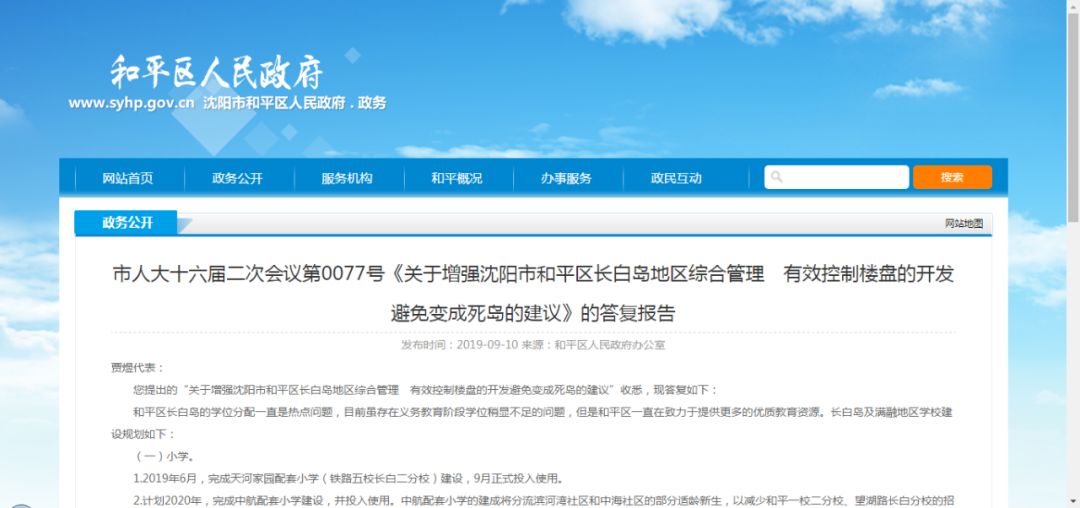 近日,小二君从沈阳市和平区政府官方网站获悉:根据和平区政府网关于增强沈阳市和平区长白岛地区综合管理,有效控制楼盘的开发避免变成死岛的建议答复显示,未来长白区域还将建设3所小学、3所中学。