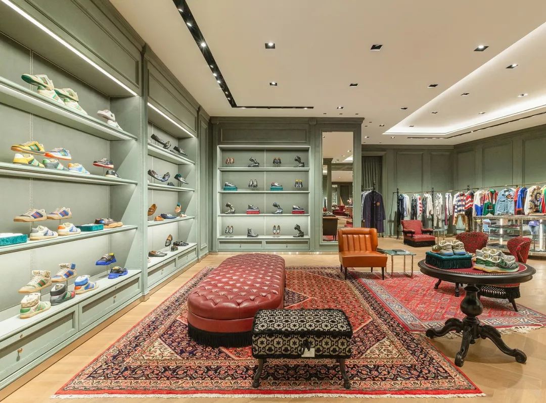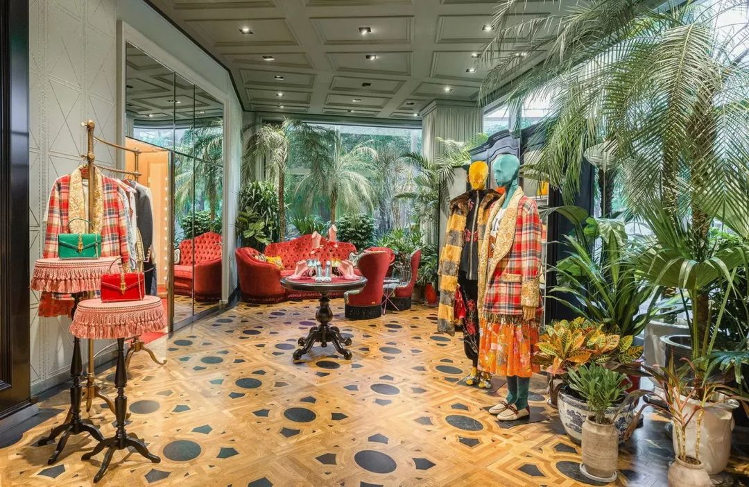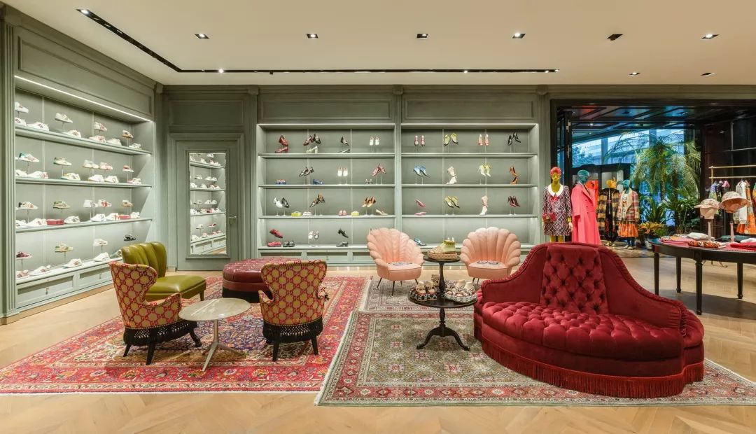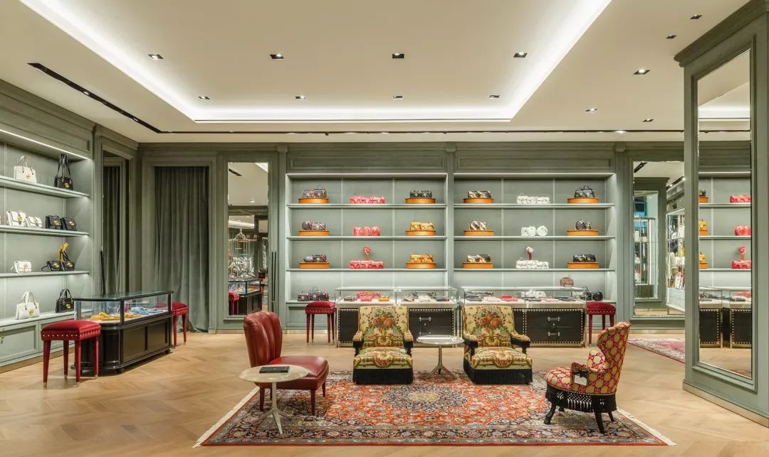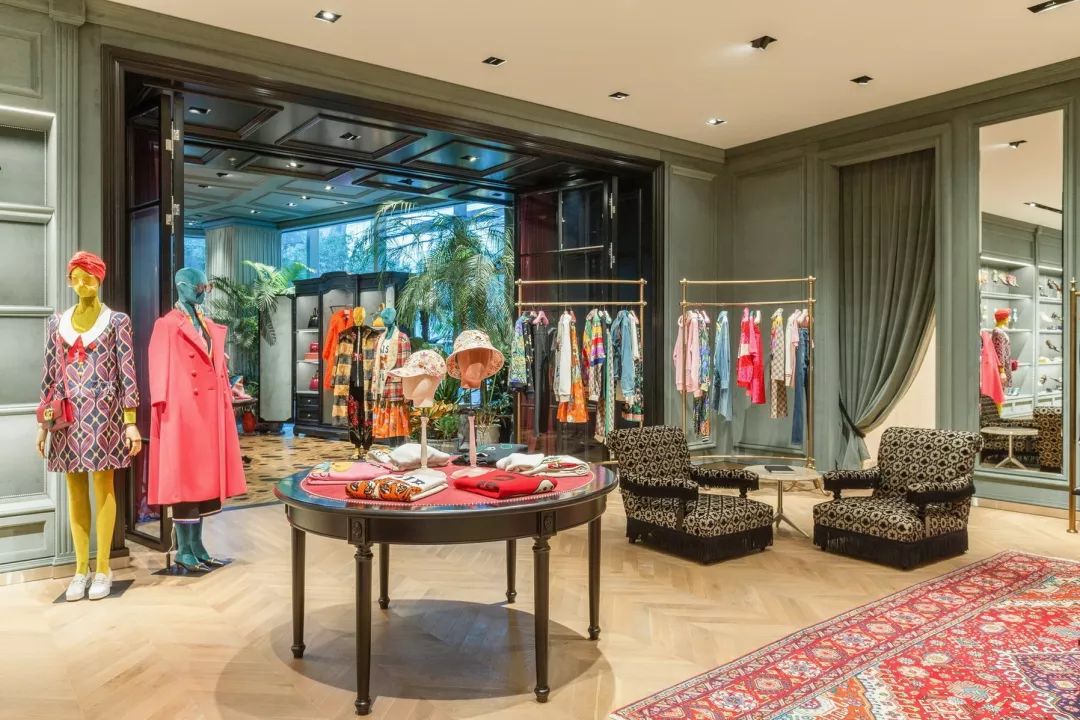 店铺设计将传统与现代、工业与浪漫风格相结合,与创作总监亚力山卓?米开理(Alessandro Michele)的美学视野遥相呼应,展现品牌优雅而现代的折衷主义美学。
