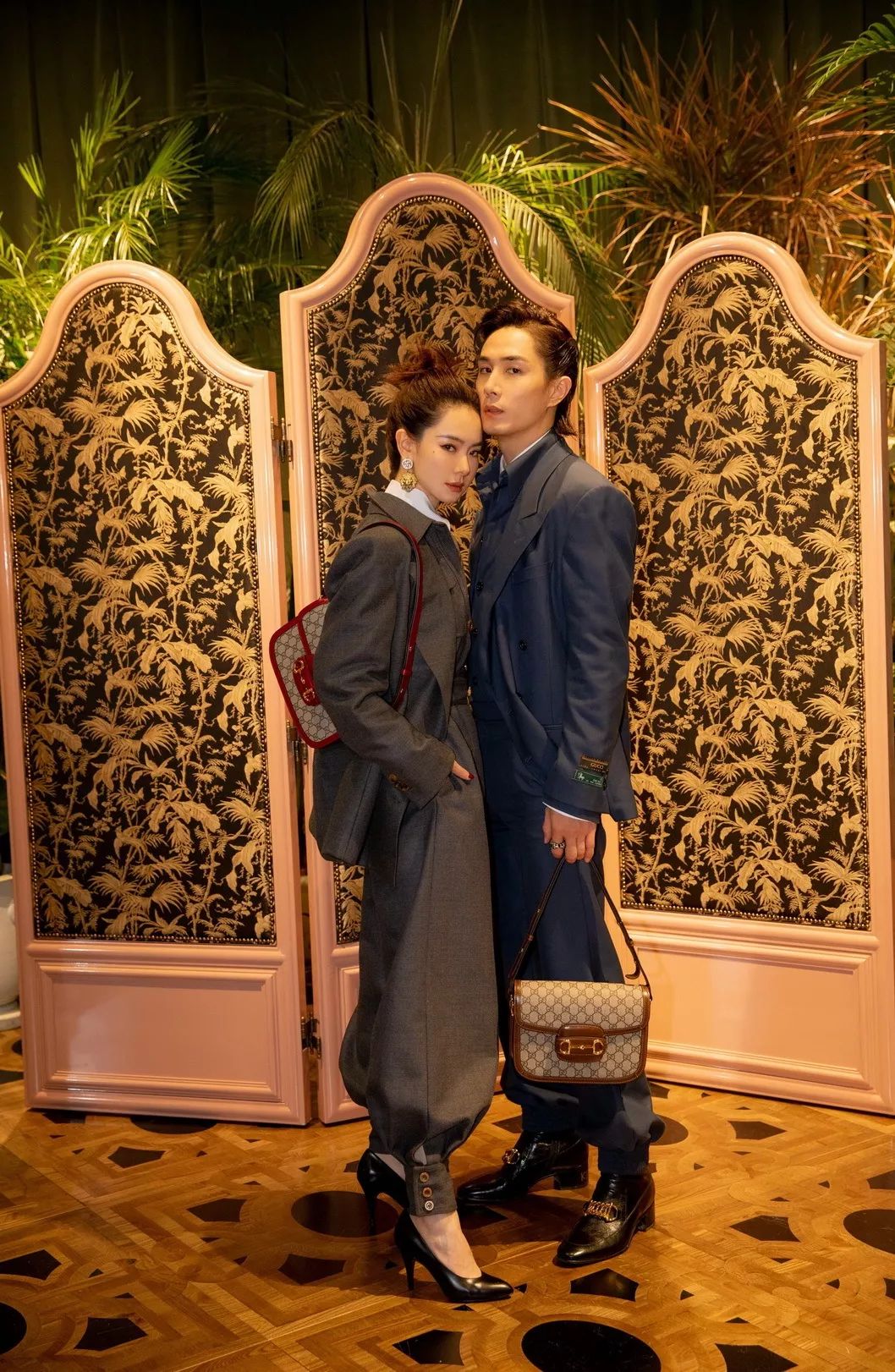 开幕当日,演员、歌手戚薇与李承铉穿着古驰出席沈阳万象城店开幕活动。戚薇穿着Gucci 2019秋冬系列灰色双排扣军装夹克、廓形连体裤、白色长袖衬衫,搭配格纹领带,Gucci Grip系列腕表及黑色皮革高跟鞋,手提1955 马衔扣系列手袋,佩戴Gucci Garden系列戒指及饰水晶狮头造型耳环。
