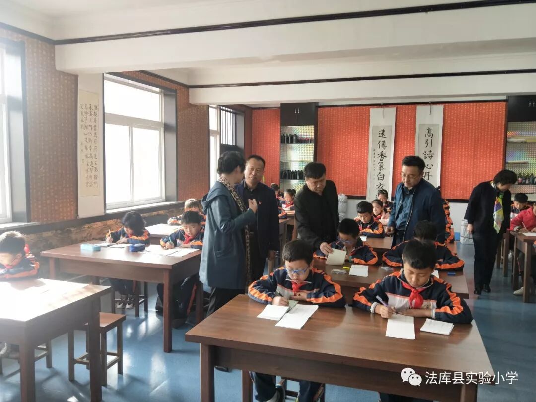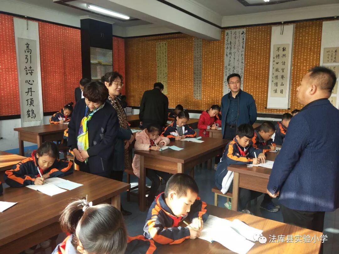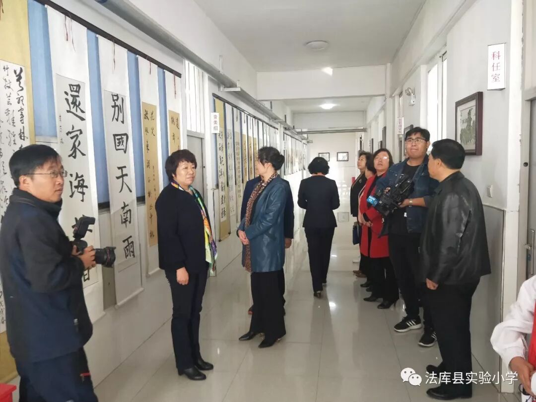金革校长率领班子成员陪同领导们首先参观了雅韵长廊,教师们的签到栏和书写的诗词,引来了领导的驻足,并对教师的基本功都赞不绝口。接下来的调研,都由我校的小小讲解员引领并做详细讲解。