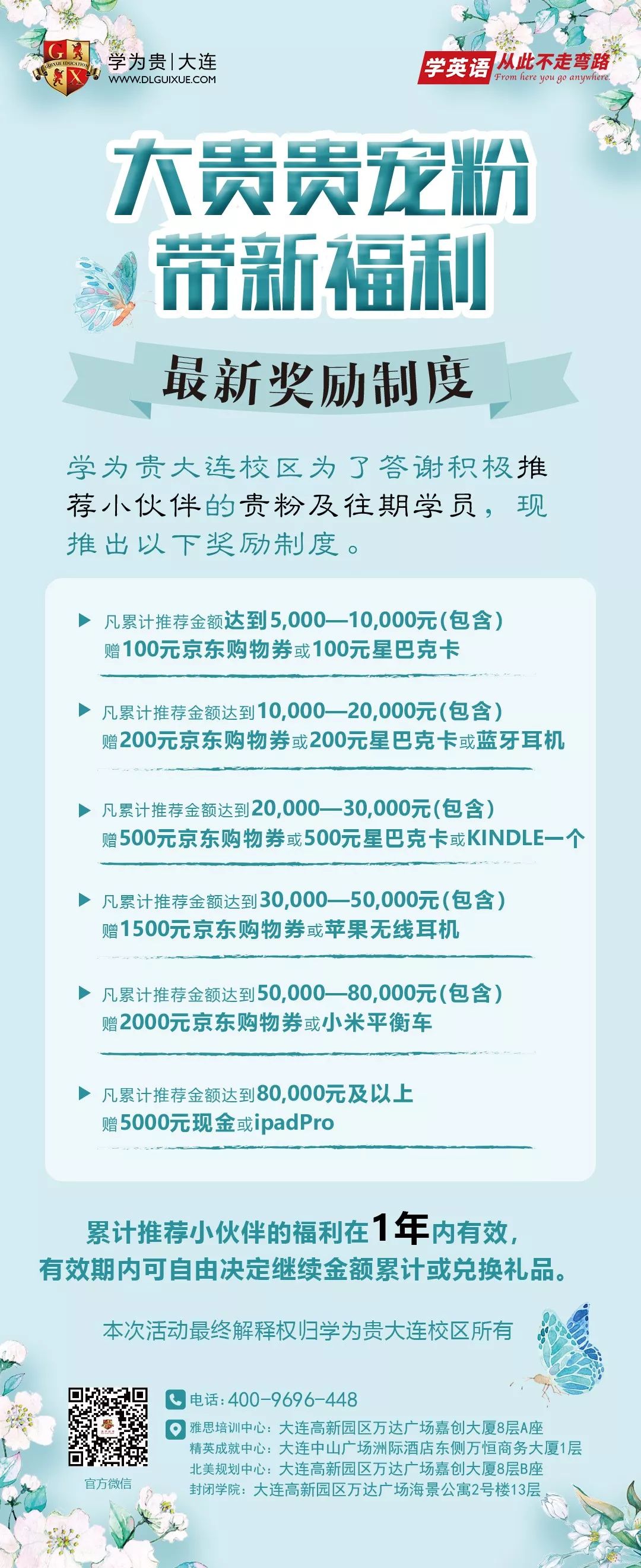 当你拿到心满意足的成绩奔向远方时,我们联系并没有中断,因为热心的你们将大连学为贵顶级的师资和高品质的课程带给了身边同样有雅思托福需求的小伙伴。