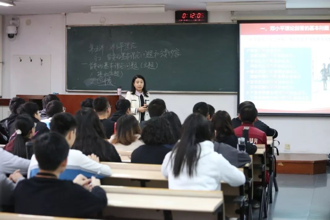 王晓来副教授的思政课以阐述社会主义本质出发,从邓小平中国特色社会主义理论,到马克思主义与中国具体实践相结合,并以华西村为例,讲解了社会主义共同富裕的目标。