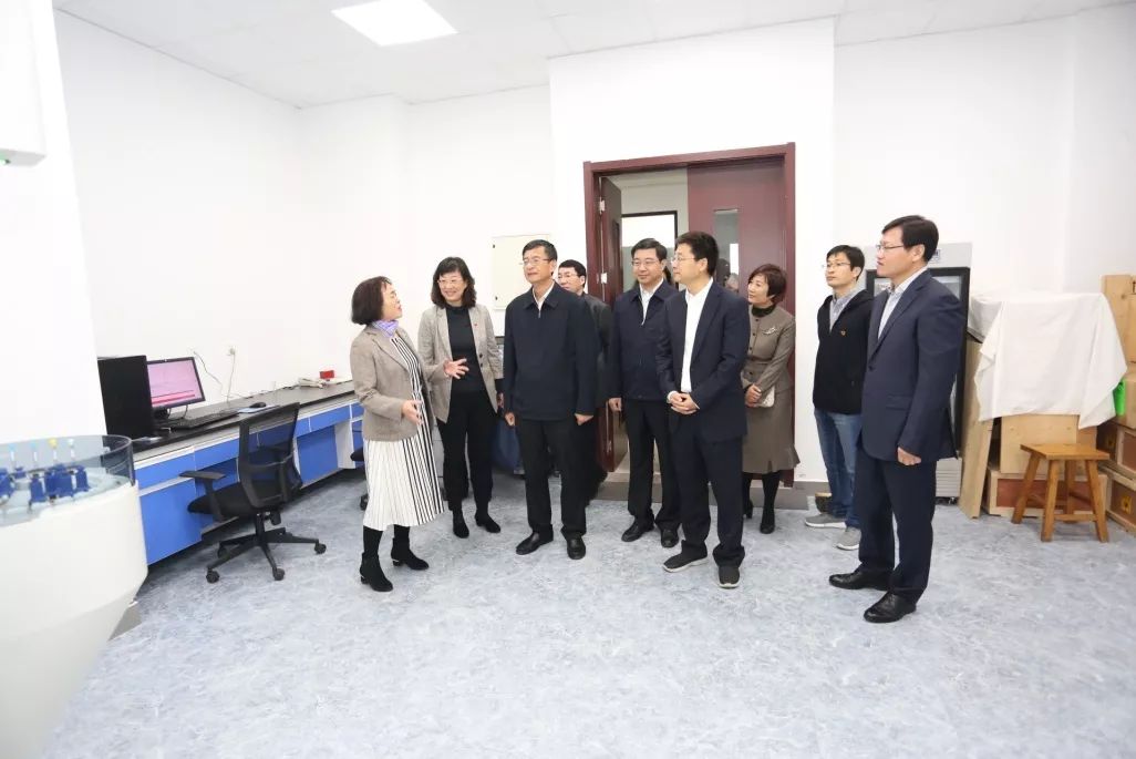 听课后,徐少达副书记深入基层检查督导第二批主题教育,指导高校开展好“不忘初心、牢记使命”主题教育。党委副书记郭长明等校领导陪同徐少达副书记一行来到环境化学与工程学院,听取了党总支书记姜丽娟关于学院结合主题教育,落实立德树人根本任务,抓课程思政建设,以“青年教师课程思政竞赛活动”为抓手,探索理工科的课程如何落实课程思政的工作汇报。徐少达副书记对学院党组织抓课程思政建设的创新务实做法给予充分肯定,并鼓励他们要把这项工作做好,要持续地做下去。要引导大家把思想政治工作贯穿于课堂教学的各个环节,引导广大教师守好一段渠、种好责任田,推进全员全过程全方位育人。徐少达副书记还走进实验室,与老师们交谈,检查了核磁实验室、热等静压烧结炉实验室、X-RD射线衍射实验室等安全管理责任机制建设情况,并强调实验室要建立安全第一的理念,确保实验教学和学生安全。