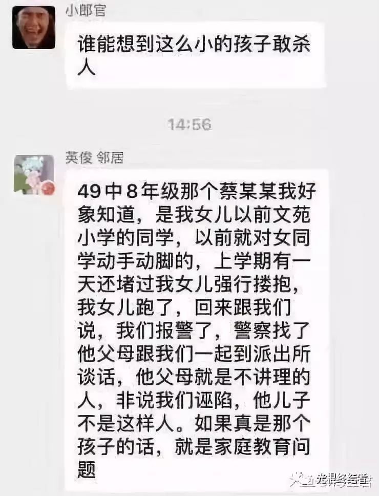 可是,这个蔡某某在作案之后,却丝毫不觉得愧意,还在班级群中发出自己作案、淇淇惨死的视频,并且发表“高傲”的演讲,叫嚣“自己未成年,根本就不用负任何法律责任”。这无疑就是在受害者家属的伤口上撒盐。