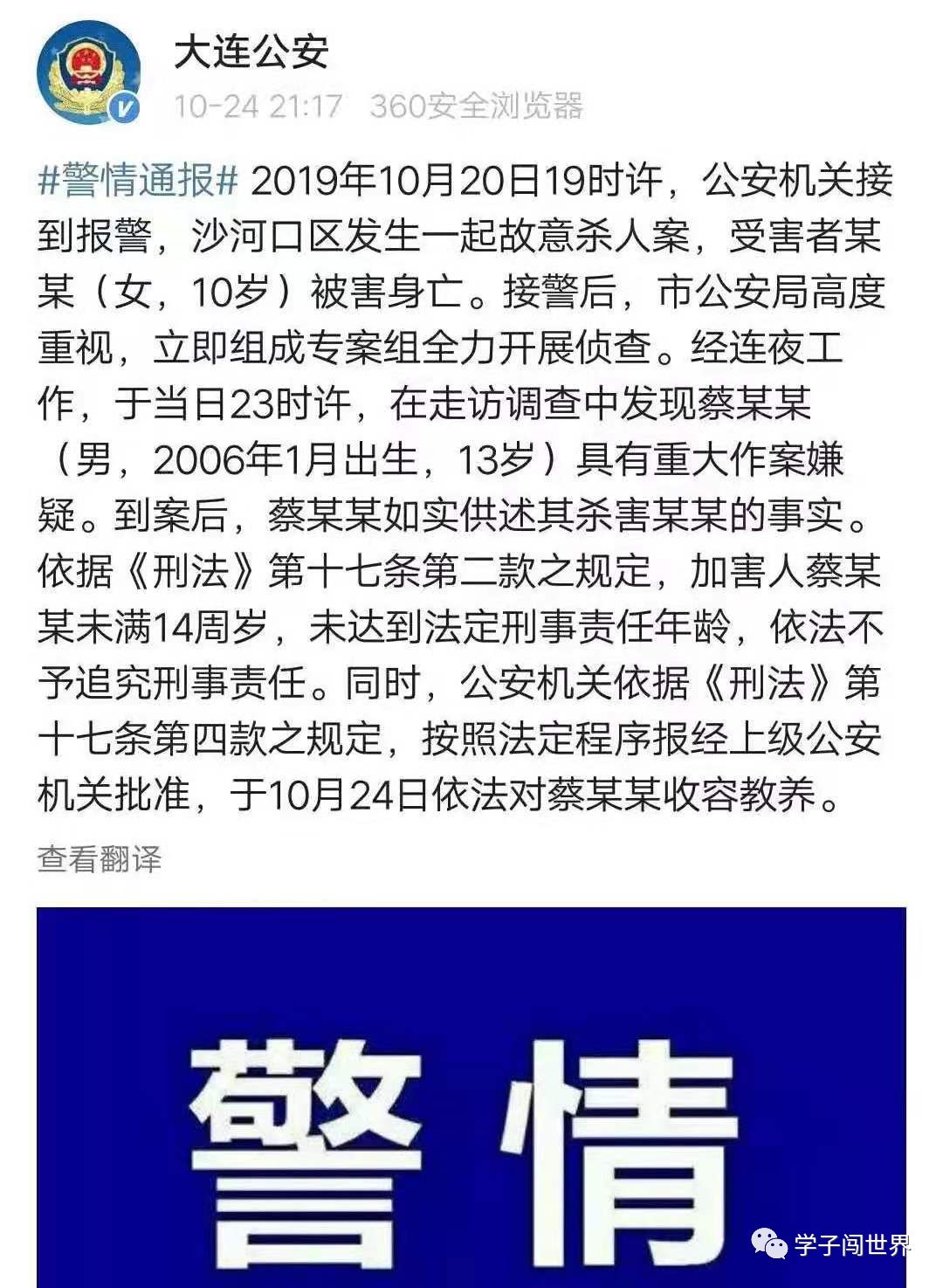 大连14岁男孩以帮忙为由,强奸未遂杀害10岁女孩,3天后因未成年释放!
