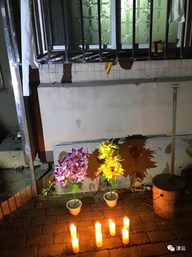 居民自发祭奠王萱(背后阳台为蔡某某家)