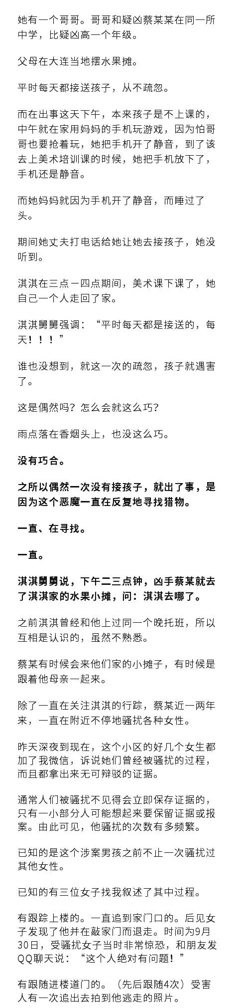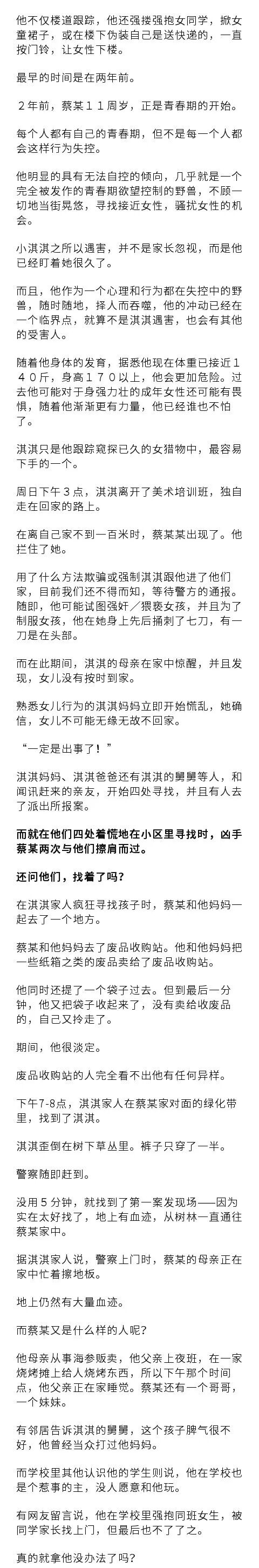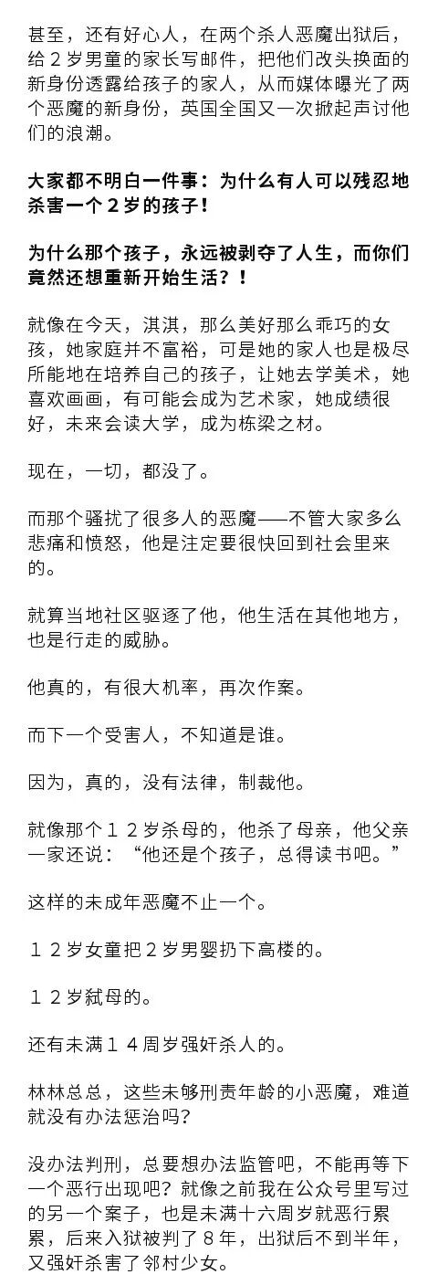 今早想,真的,我也有孩子,遇害的小女孩,和我家二女儿同龄。