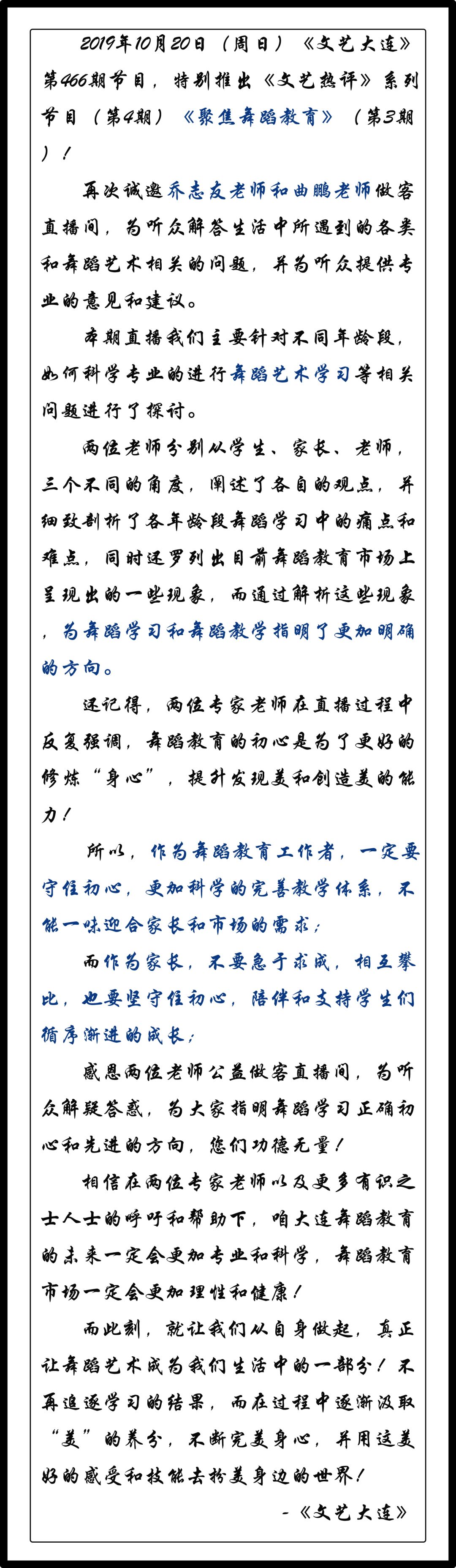 家长应该让孩子科学的、快乐的学习舞蹈。让孩子把舞蹈当成一种乐趣,不要拔苗助长。从事舞蹈教育行业的教师们,希望你们能够勿忘初心,坚守本心。