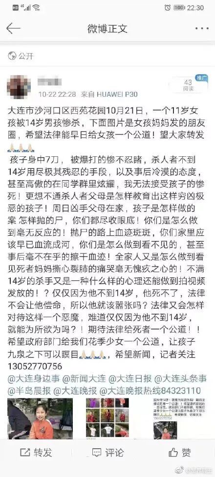 大连11岁小女孩被13岁小男孩连砍七刀,多名女性自曝曾遭13岁凶手尾随