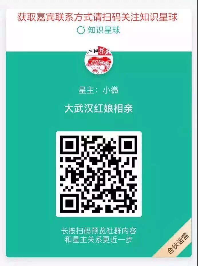 3.关注大武汉红娘知识星球即可获得嘉宾联系方式;