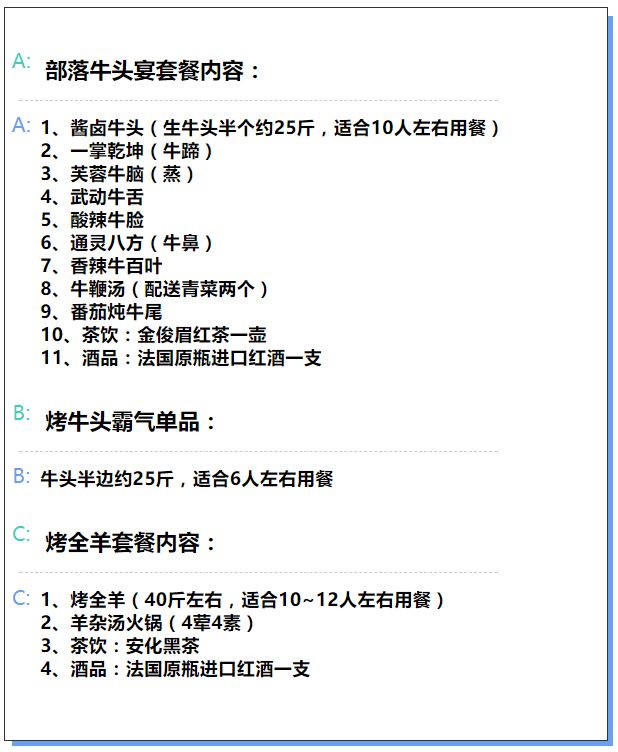 A:部落牛头宴套餐