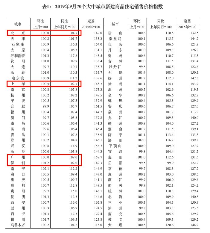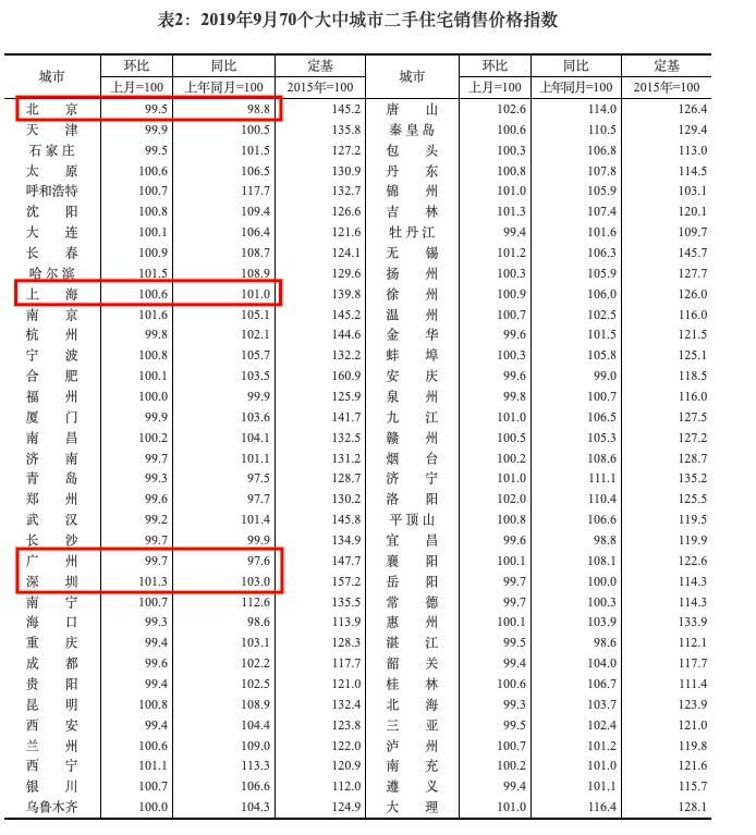 北京、广州的房价持续降温,新房价格均环比持平;广州的二手房价格由上月的持平转为下跌,跌幅0.3%;北京的二手房价格自7月以来已连降3个月,9月环比下跌0.5%。