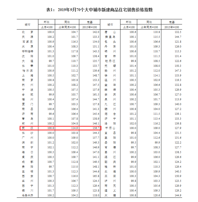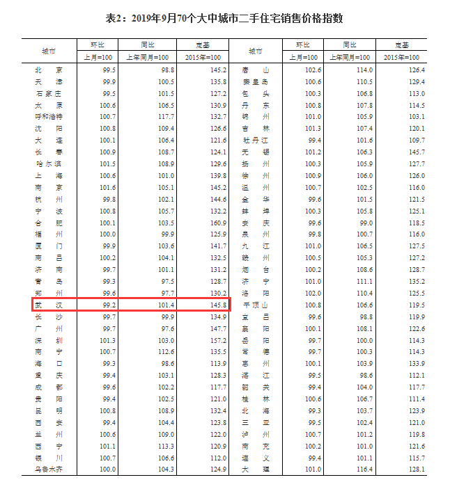 数据显示,新房价格环比上涨的有53城,比上月再减少2城,为连续4个月减少;二手房价格环比上涨的为40城,比上月再减少3城。从具体城市看,南宁、洛阳的新建商品住宅销售价格以超过2%的环比涨幅位居70城市前列。数据显示,9月武汉新建商品住宅价格环比上涨0.8%,同比上涨14.9%,相较于8月份环比上涨1.1%稍有回落;二手房住宅价格环比下降0.8%,同比上涨1.4%,相较于8月份的环比上涨0.5%,9月武汉二手房价格又转入回落下跌的局面。