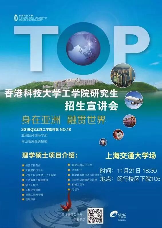 主要内容:香港科技大学及工学院介绍、MSc授课型研究生项目综合介绍、校友分享、现场问答