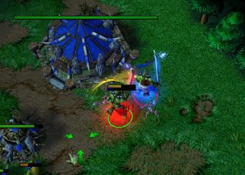 或许是因为想变战术避免Fly针对,Infi在二番战首盘用起了剑圣。不管Infi怎么变,他骨子里还是一位人族,即便是用兽族,也少不双线换家。剑圣骚扰分矿农民,主矿大部队拆地洞,Fly双线忙得焦头烂额,顾上了主矿,分矿的剑圣竟然没有操作过来,直挺挺地被Infi击杀。