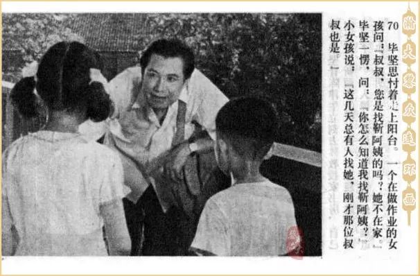 70、毕坚思忖着走上阳台。一个在做作业的女孩问:“叔叔,您是找靳阿姨的吗?她不在家。”毕坚一愣,问:“你怎么知道我找靳阿姨?”小女孩说:“这几天总有人找她,刚才那位叔叔也是。”