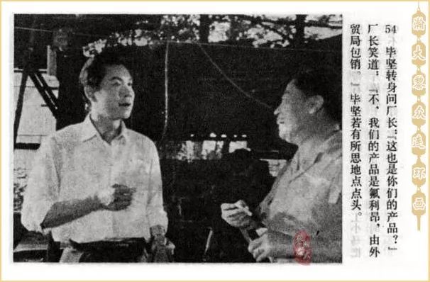 54、毕坚转身问厂长:“这也是你们的产品? ”厂长笑道:“不,我们的产品是氟利昂,由外贸局包销”毕坚若有所思地点点头。