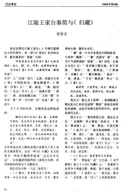 所以,这个湖北江陵王家台秦墓出土的《归藏》,应该就是殷商时代流行的那部《易》!