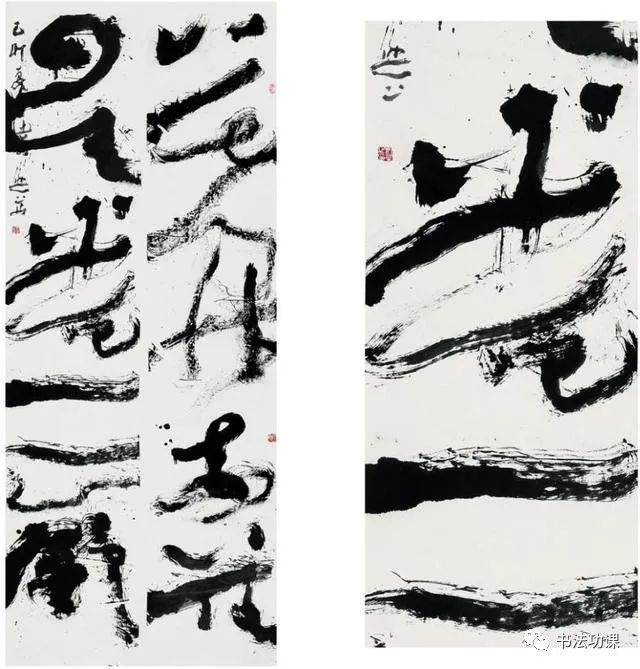 把厚重苍茫和流畅使转放在一起,以冲击草书的轻薄飘浮。他们都有深厚的古典功底,都踢过腿,站过桩。甚至于他们都能写很好的楷书。但他们没有停步,他们在不断的探索,他们是真正的艺术家。