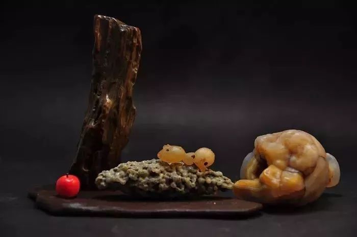 有些石头单个看很不起眼,但是如果将几个摆在一起,便成了小品组合石,它们或展现了美丽的田园风光、或演绎了经典的神话故事、或表现出禅意静美的场景,总之几块小小的奇石,成为浓缩版的立体雕塑作品,它不仅展示了大自然的美,同样也敲开了我们内心的门。